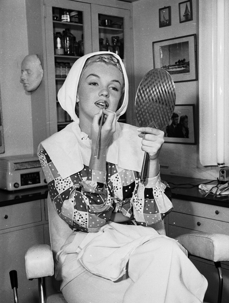 За време на Втората светска војна, идната ѕвезда — тогаш сè уште позната како Норма Џин Мортенсон — работела во фабрика за авиони. Таму проверувала падобрани и учествувала во бојадисување на летала. Токму на тоа работно место била направена нејзината прва фотографија, наменета за пропагандни брошури во поддршка на американските војници.