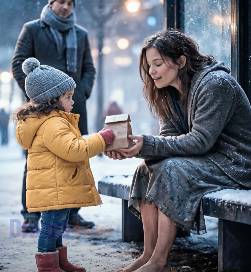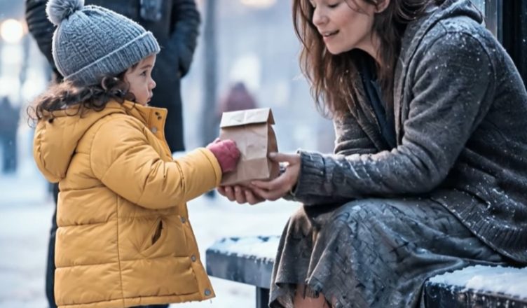 Девојчето го погледна нејзините боси стапала за момент… потоа ѝ ја протегна хартиената ќесичка.