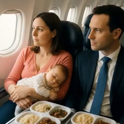 Кога стјуардесите го донесоа оброкот, воопшто не размислував за јадење. Моите раце беа постојано зафатени: доење, менување пелени, нишање, обид да го смирувам… Сè што е нормално дома, но овде, во затворен простор на небото, изгледаше многу потешко.