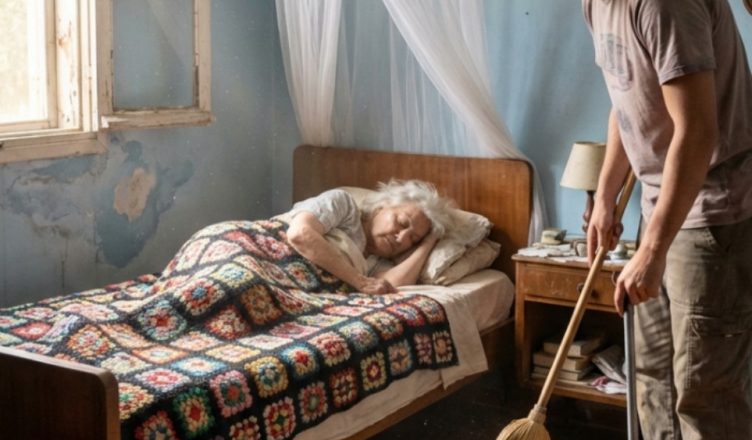 Нејзините раце трепереа додека се потпираше на стапот, а очите носеа тежина од долг и осамен живот.