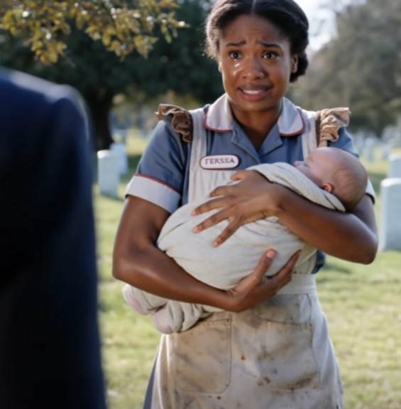 Serrant le bébé contre elle.